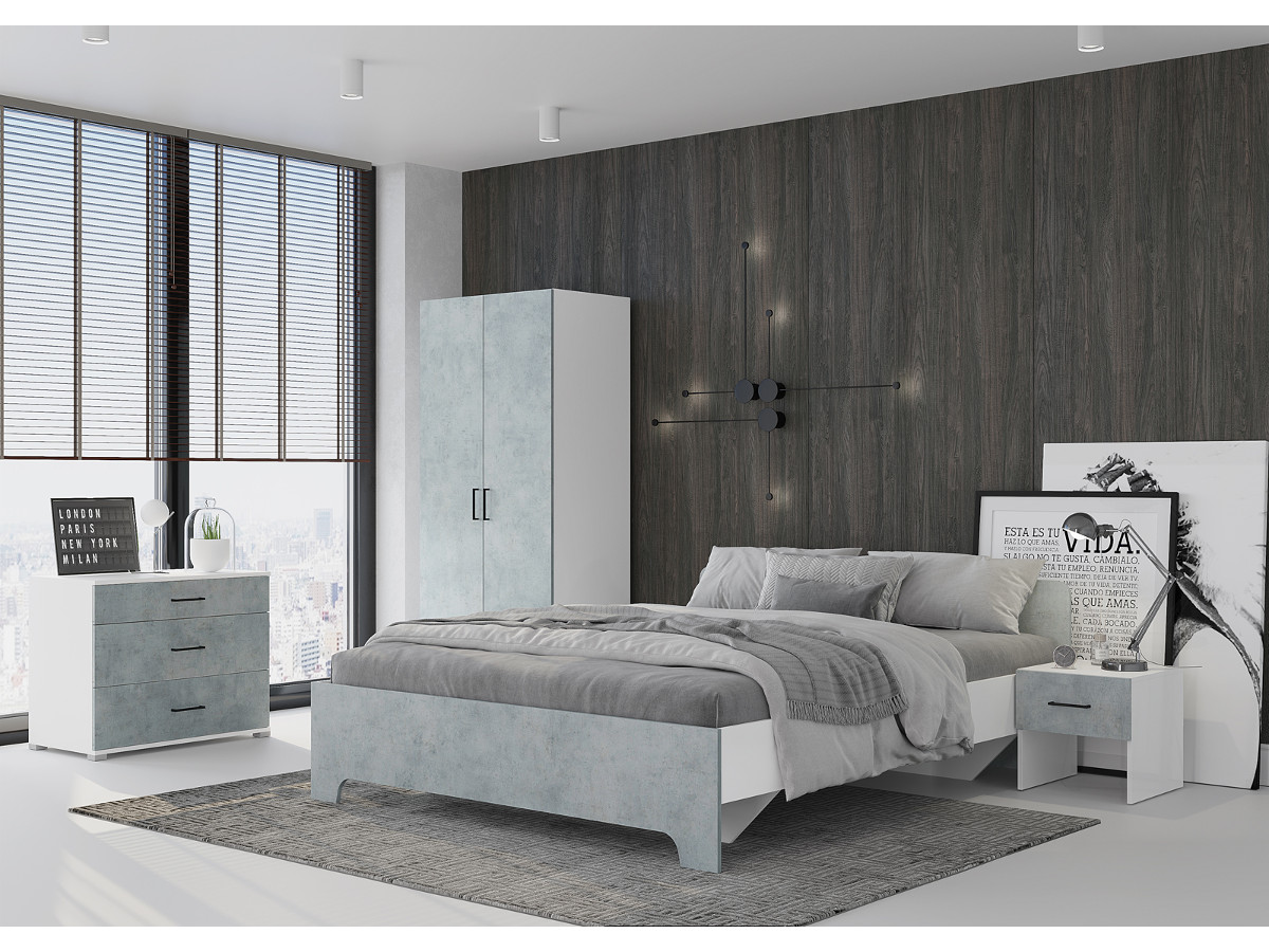 Цена за комплект: Шкаф 2 створчатый, Кровать + Основание, Комод, Тумбочка (2 шт)