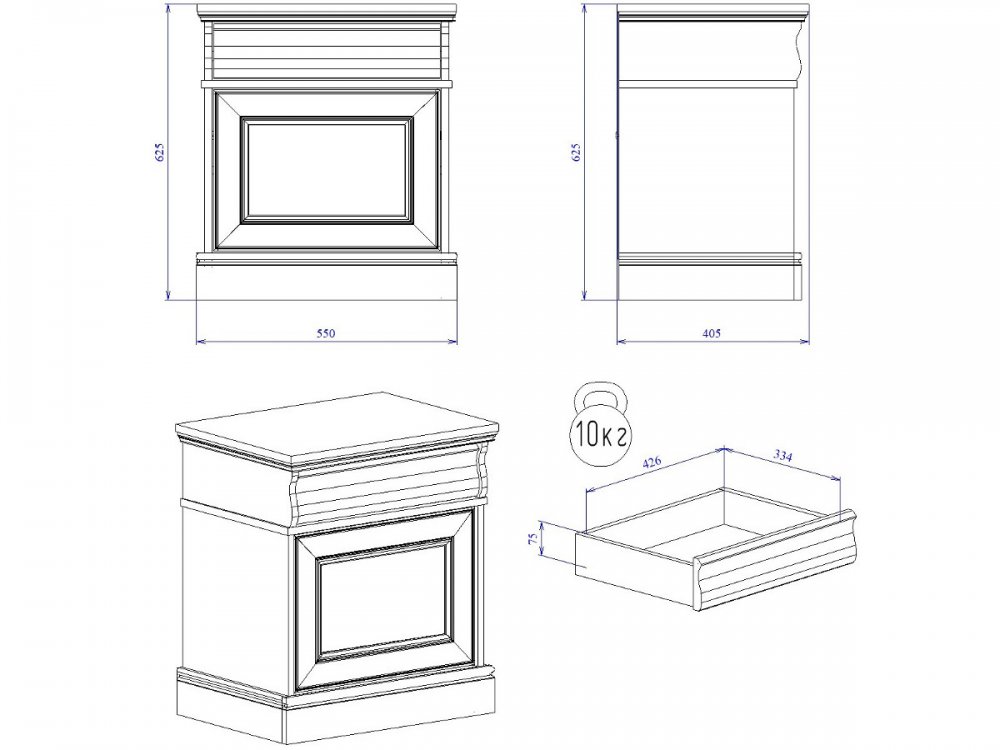 Максимальная нагрузка на полку - 15кг, на ящик -10кг
