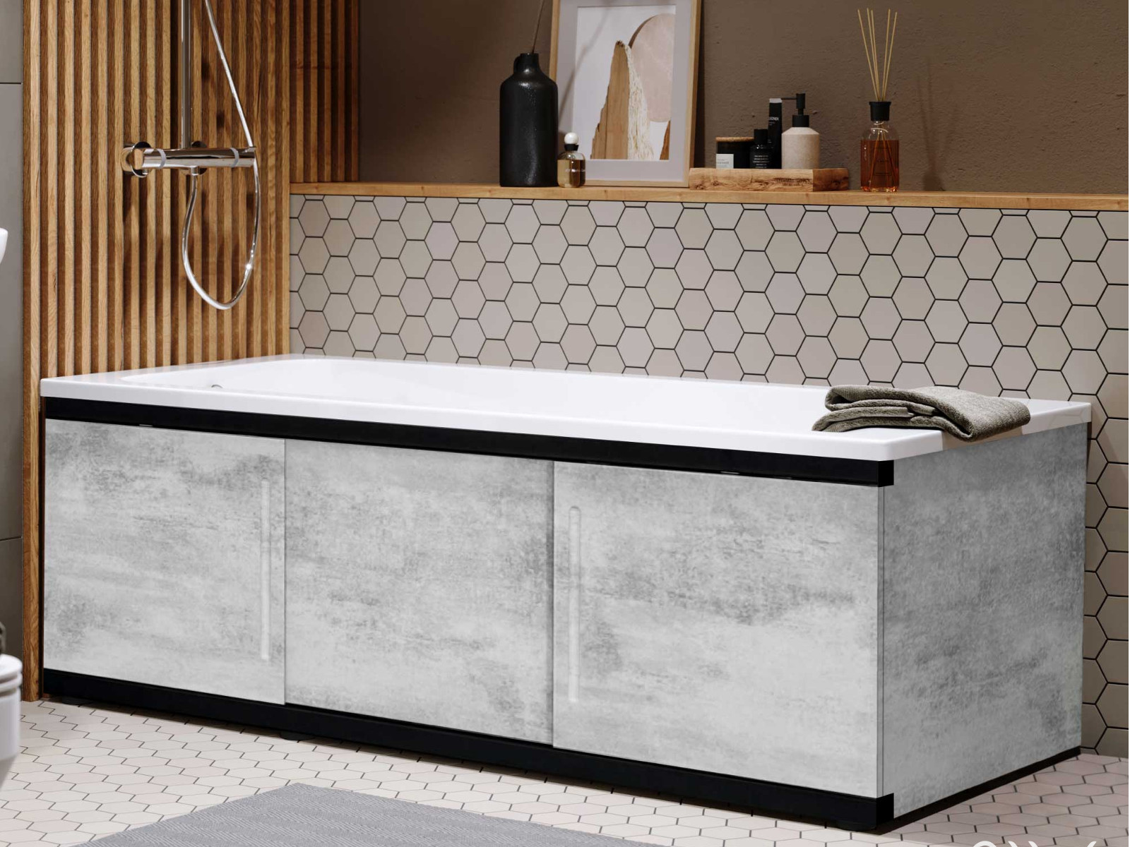 - Экран под ванну МДФ Alt Black 1600 мм серый бетон