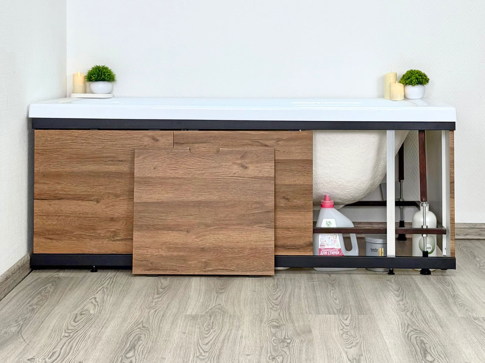 - Экран под ванну МДФ Rita Black 1600мм дуб