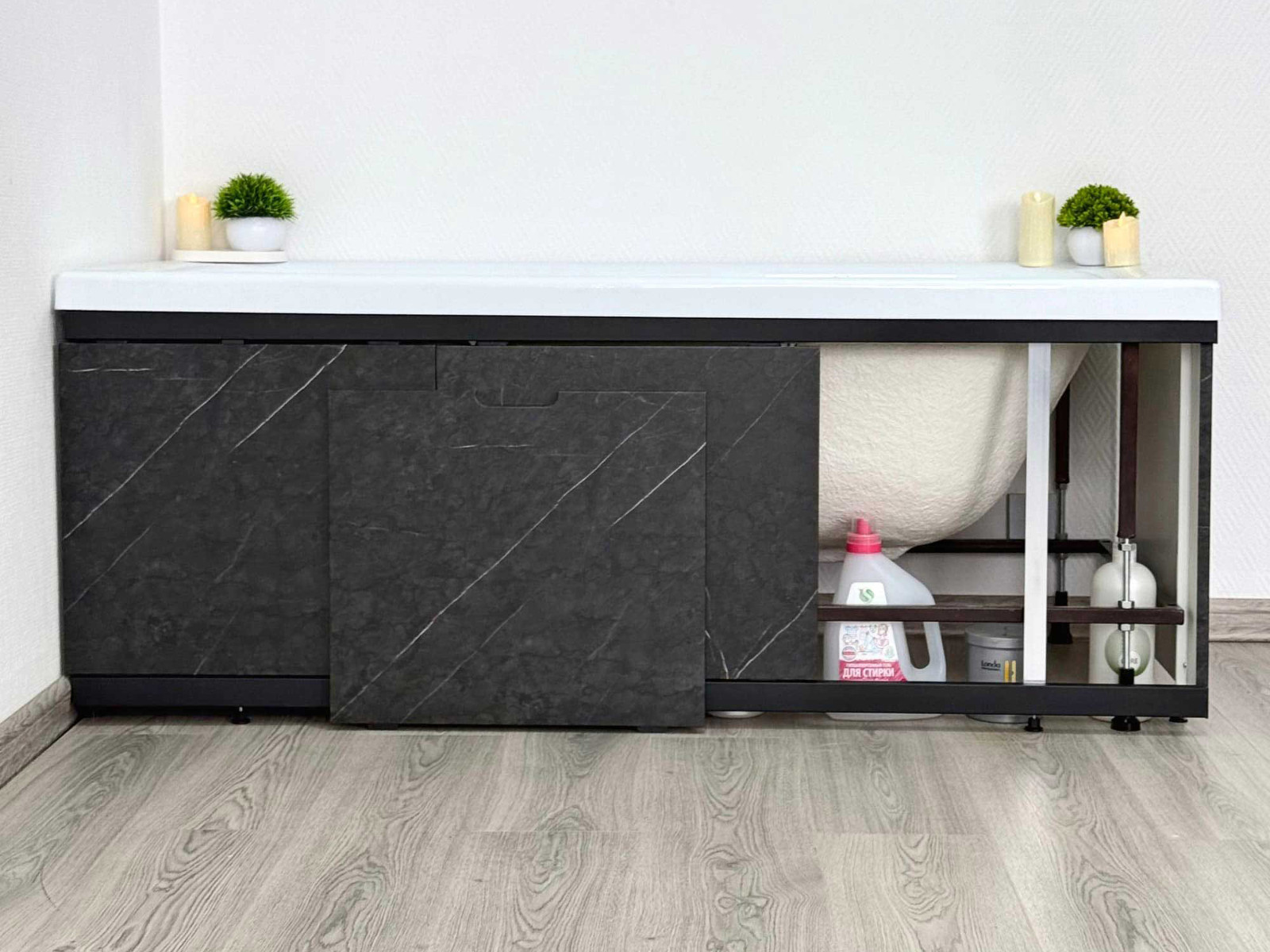 - Экран под ванну МДФ Rita Black 1800 мм черный мрамор