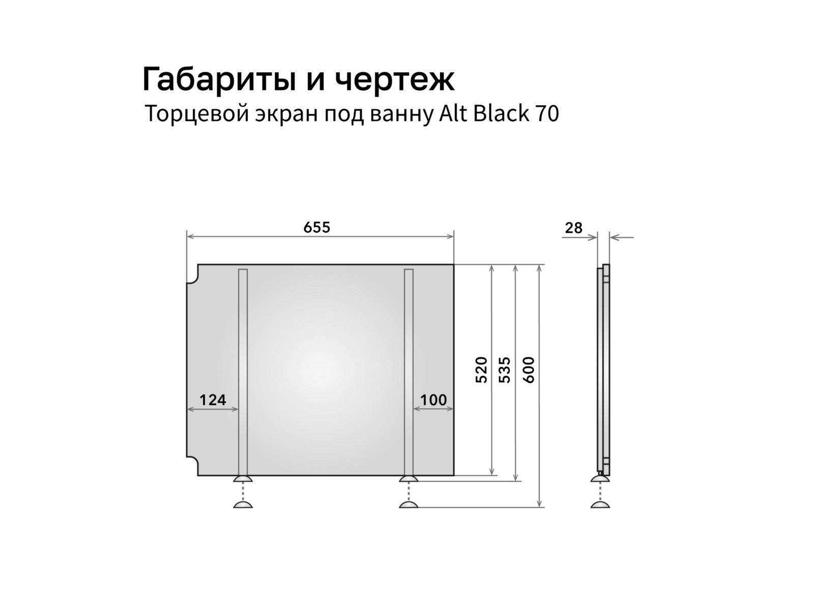 - Экран под ванну МДФ Still/Alt 0,7 торцевой черный мрамор