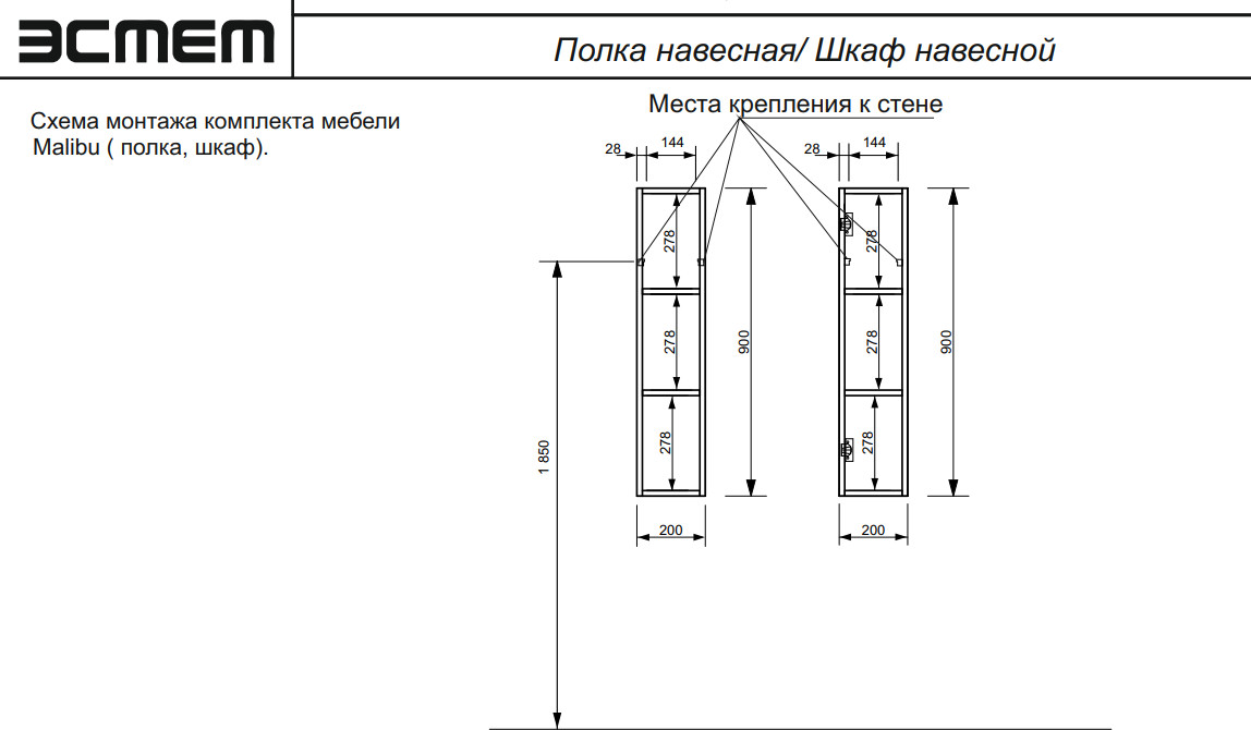 - Шкаф навесной Malibu правосторонний