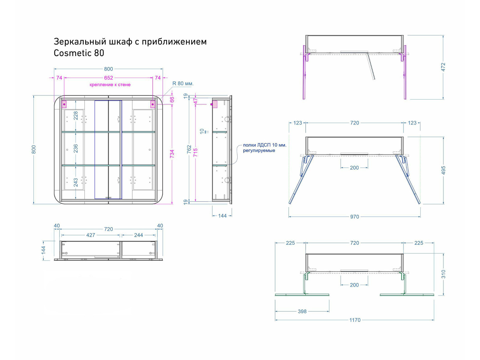 - Шкаф зеркальный Cosmetic 80 без светильника