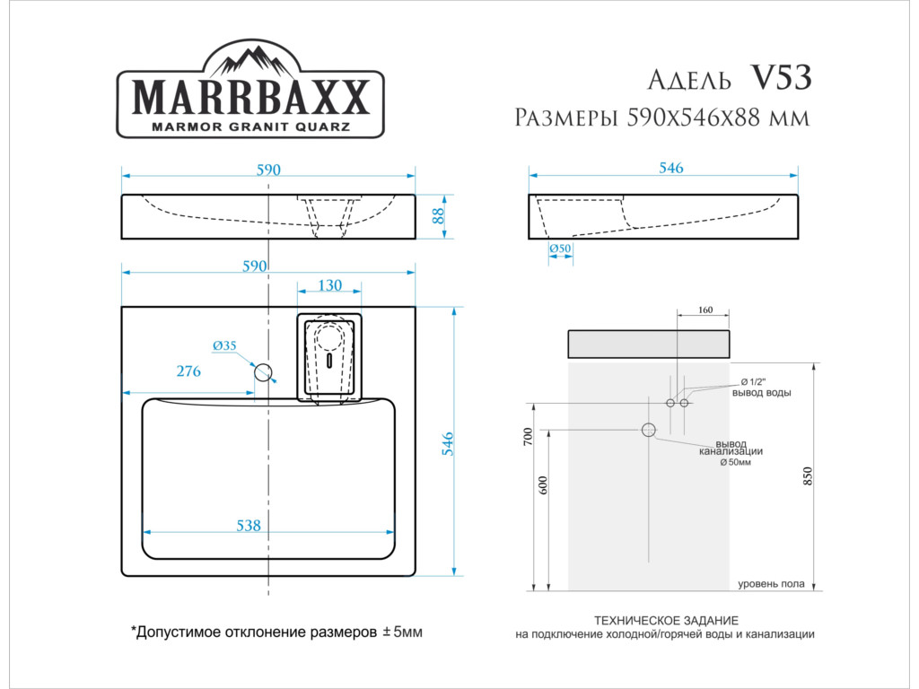 Материал: Материал-литьевой мрамор;раковина устанавливается на кронштейны над стиральной машиной(не допустимо монтировать на столешницу стиральной машины).