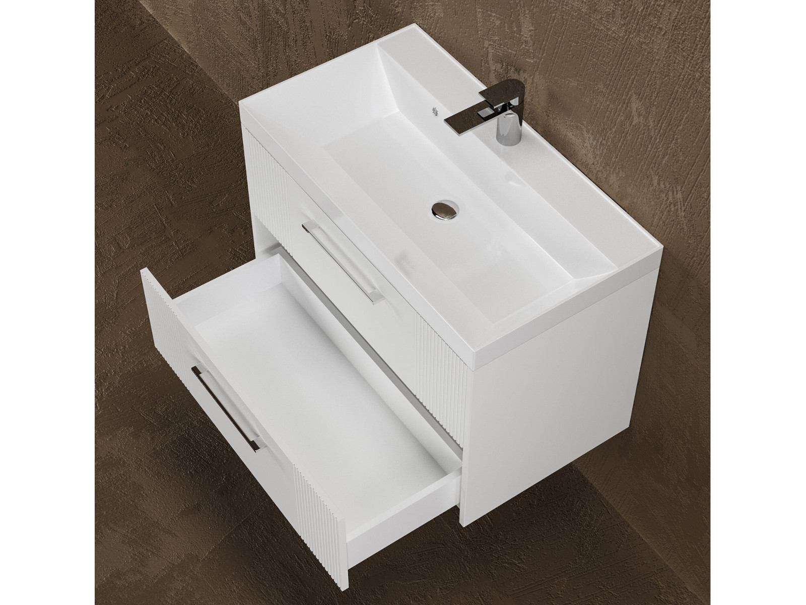- Тумба Альба 80 подвесная 2 ящика раковина Комфорт 80 суфле