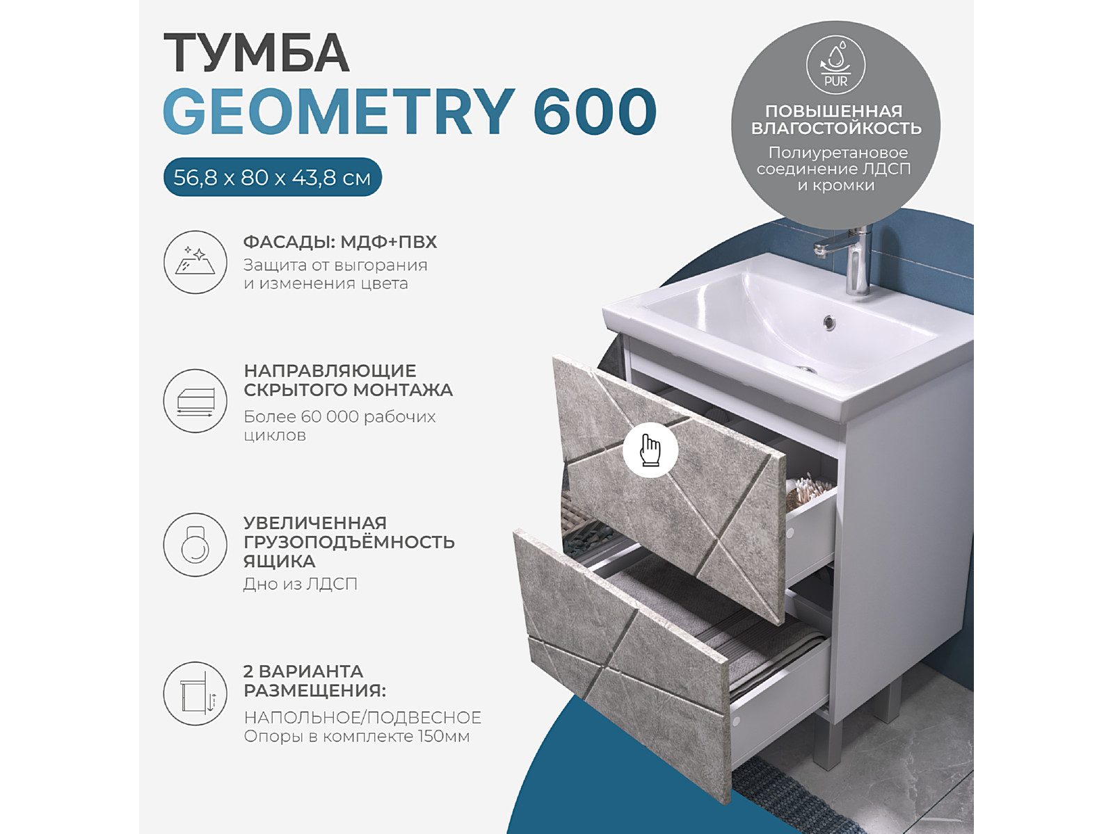 - Тумбы Geometry 600-0-2 (под ум Фостер) бетон