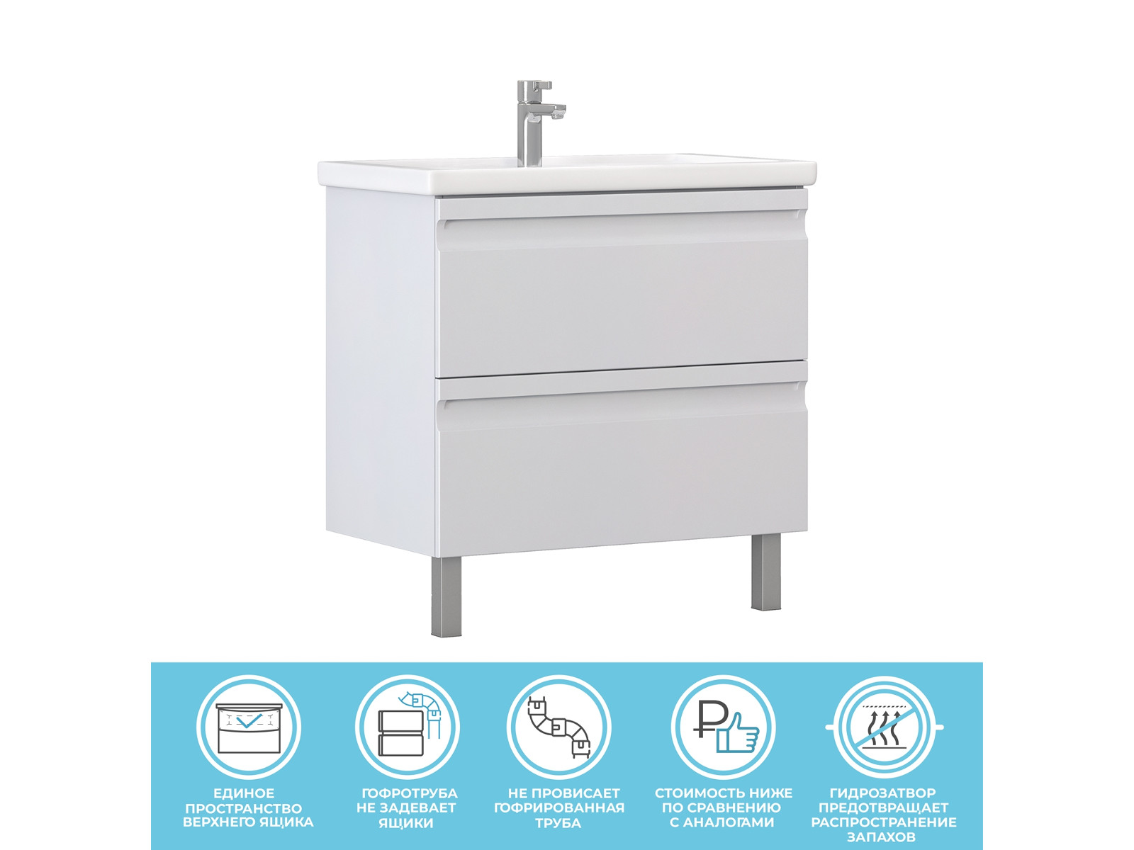 Тумба с раковиной Kare Luxe 800 напольная 2 ящика