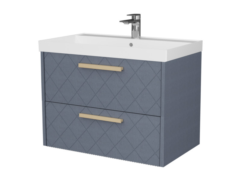 - Тумба Кристалл 70 подвесная 2 ящика ручка дуб, раковина Слим 80 шато азур