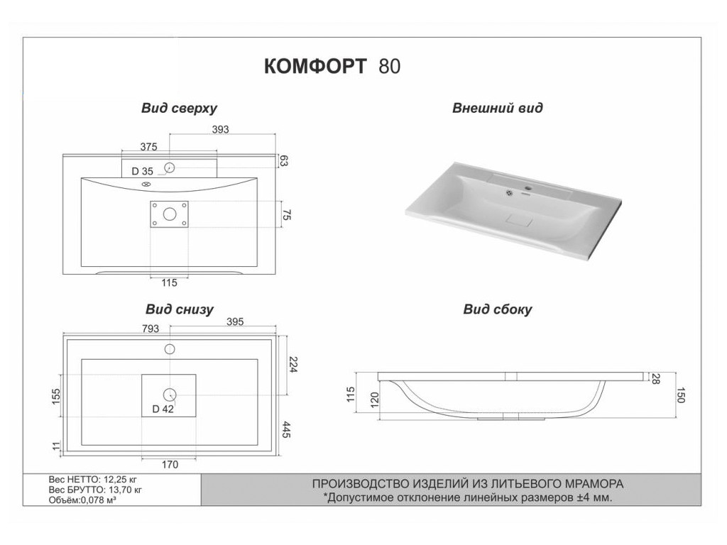 - Тумба Кристалл 80 напольная 2 ящика ручка дуб, раковина Комфорт 80 шато азур