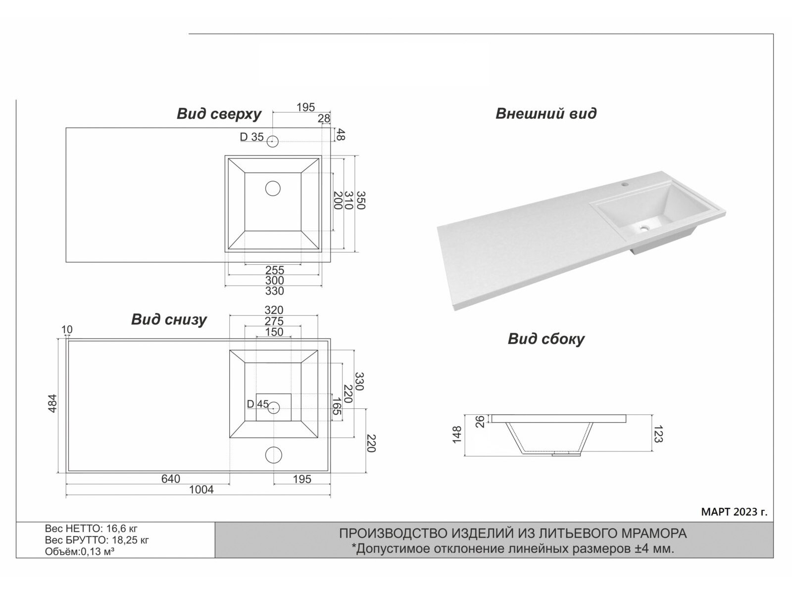 - Тумба Леон Риф 57 напольная 2 ящика раковина под Marshall 120 правая