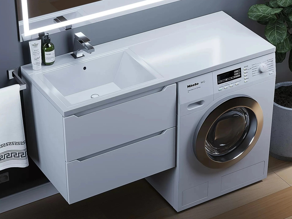 - Тумба под стиральную машину Uperwood Tanos 60 см подвесная левая белый