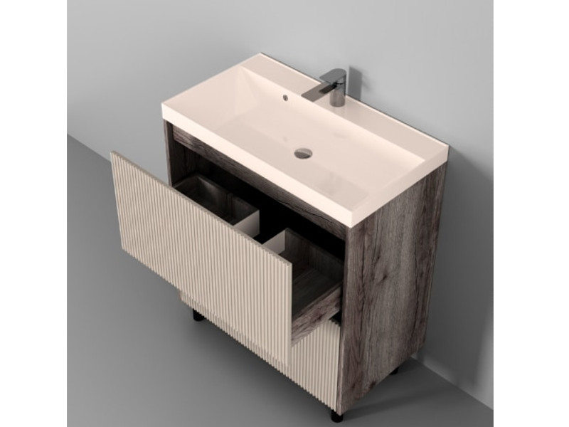 - Тумба Рица 80 напольная 2 ящика раковина Комфорт 80 cерый/керамика