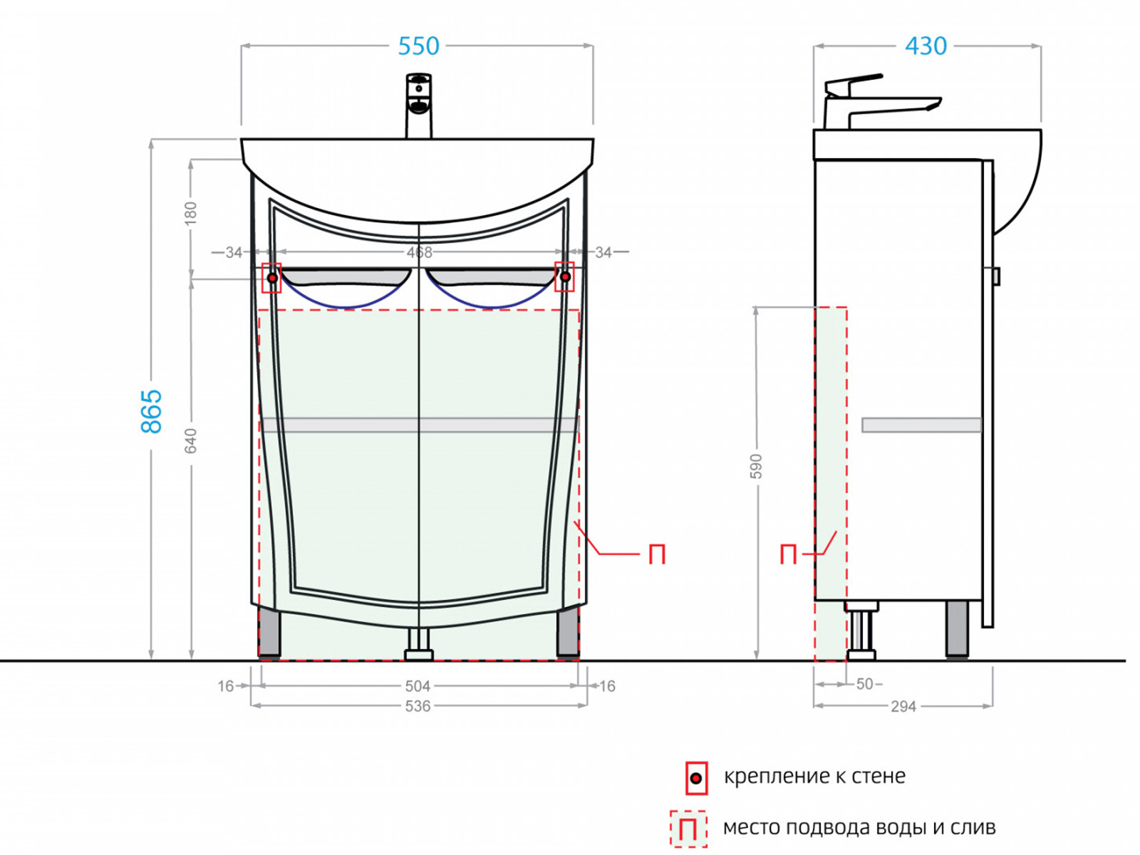 - Материал раковины: Фаянс
