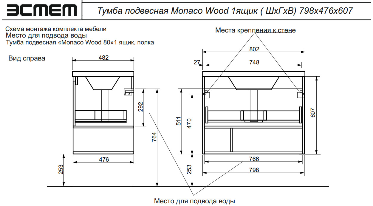 - Тумба с раковиной Monaco Wood 800 1 ящик с нишей
