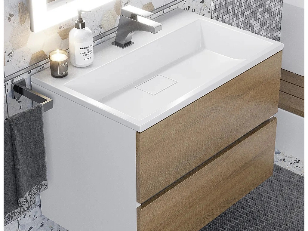 Тумба с раковиной Uperwood Barsa 70 см раковина белая-тумба белая/дуб сонома