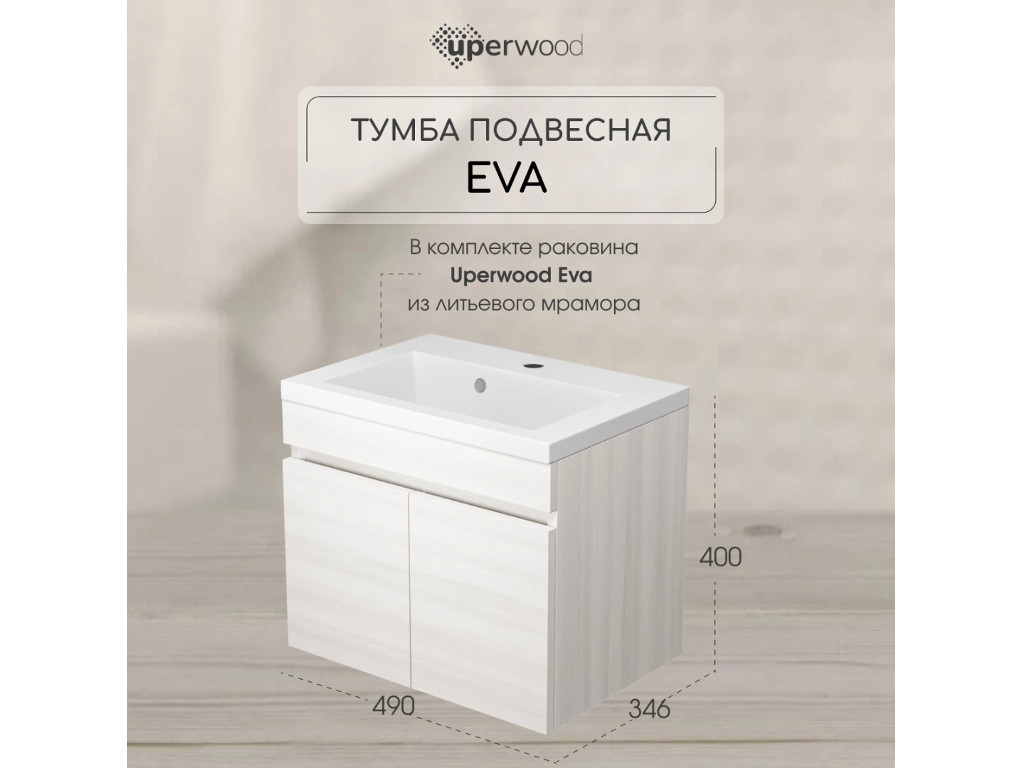 - Тумба с раковиной Uperwood Eva Дуб Харбор белый 50 см
