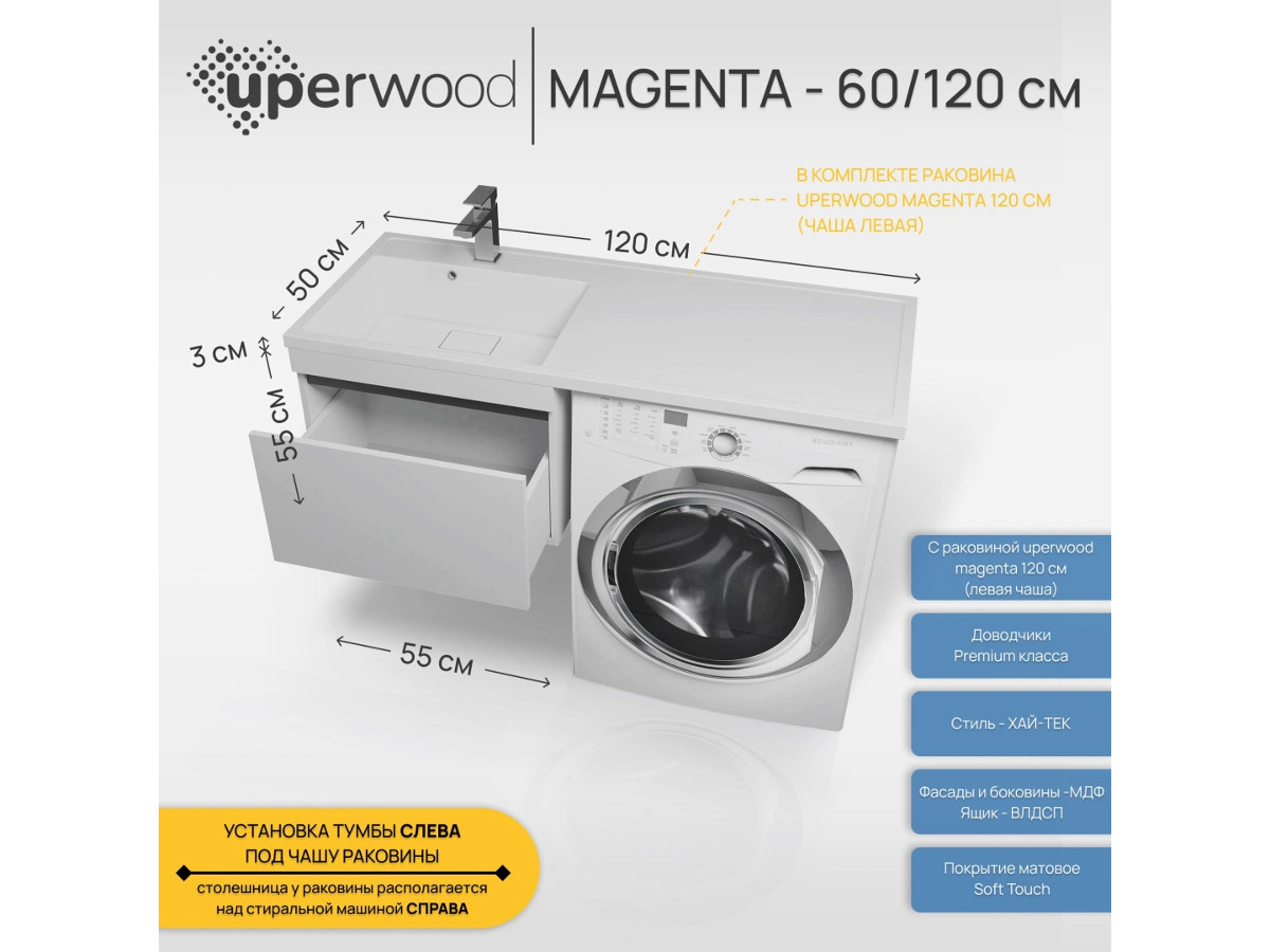 - Тумба с раковиной Uperwood Magenta 60-120 см подвесная белая/графит выдвижной ящик левая