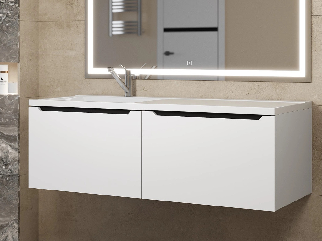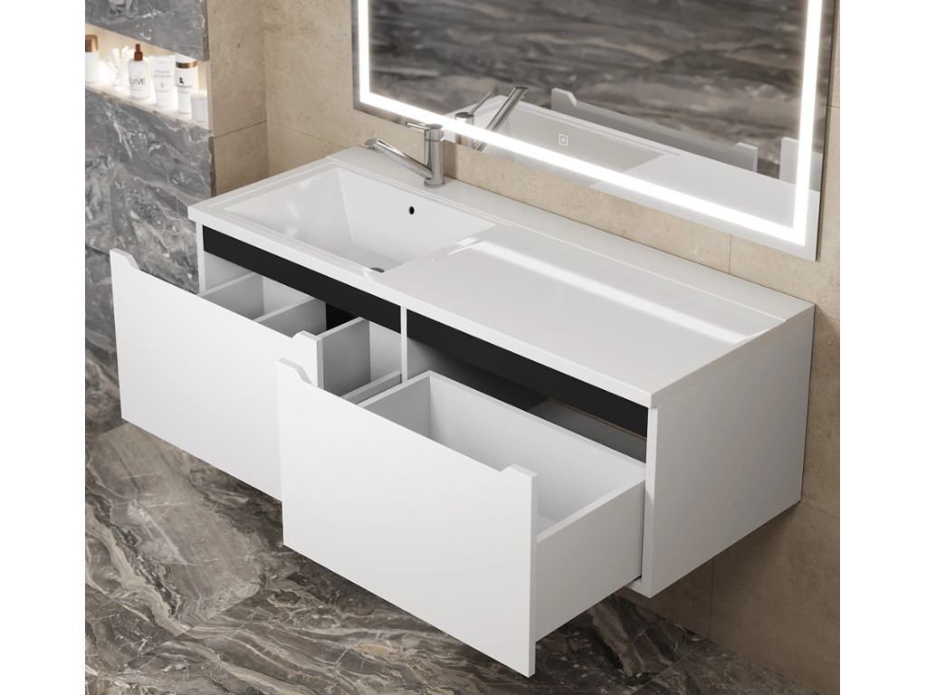 - Тумба с раковиной Uperwood Tanos 120 см подвесная левая белый/графит