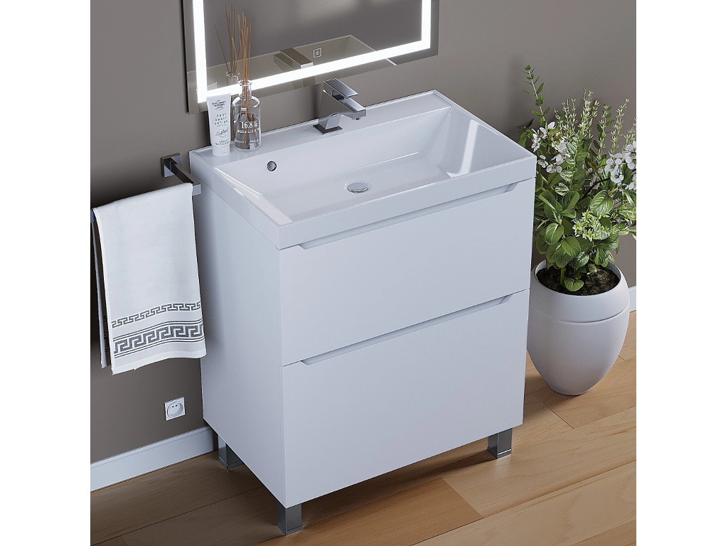 Тумба с раковиной Uperwood Tanos 2 ящика напольная 70 см белая