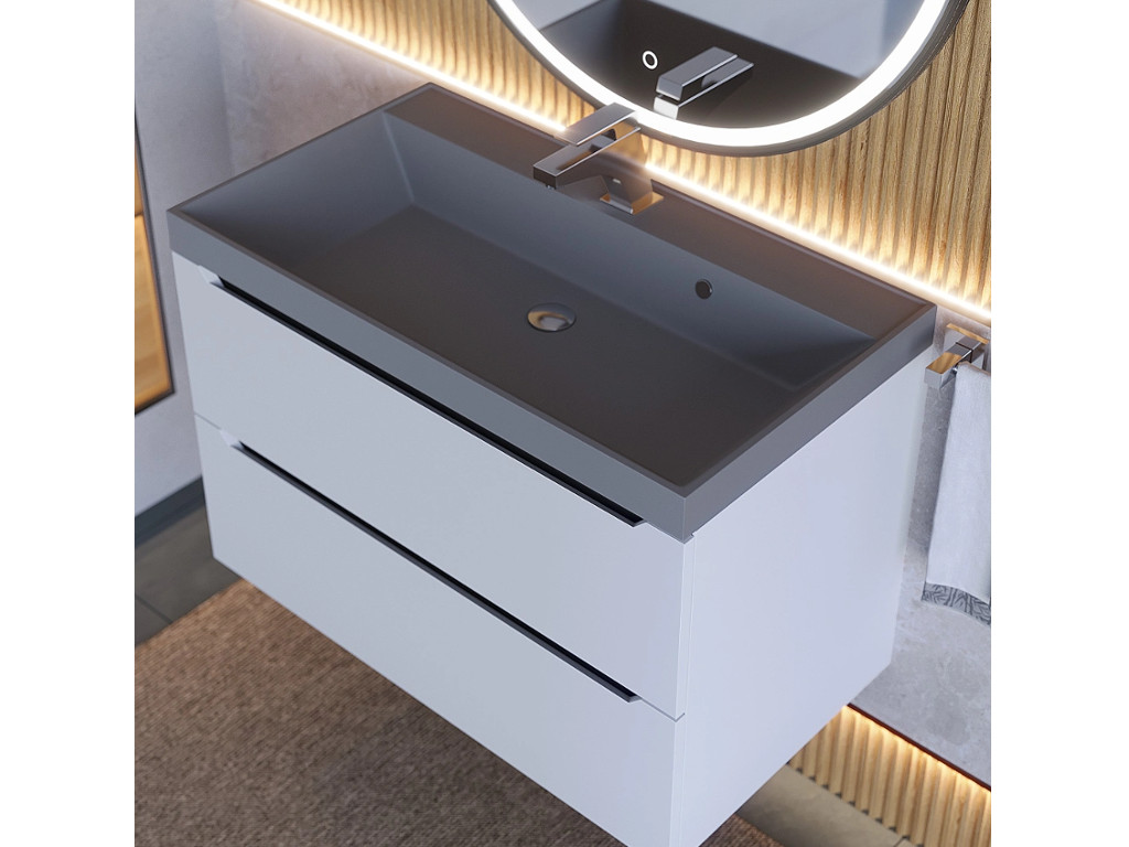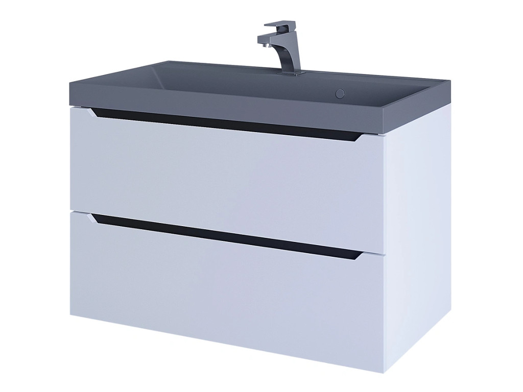 - Тумба с раковиной Uperwood Tanos-Classic Quartz белая графит/бетон 80 см
