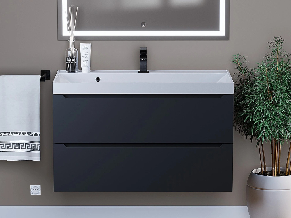 - Тумба с раковиной Uperwood Tanos матовая черная 90 см