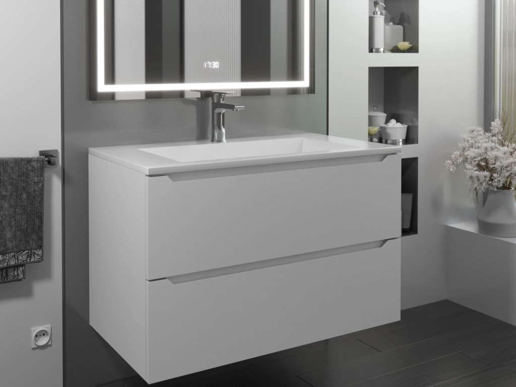 - Тумба с раковиной Uperwood Tanos-Next белая матовая 80 см