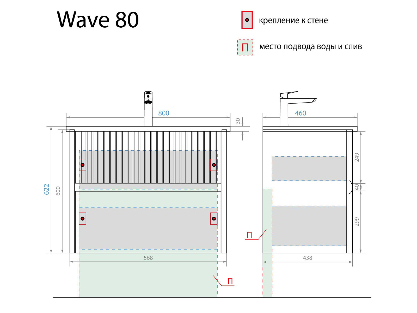 - Тумба с раковиной Wave 80 белая