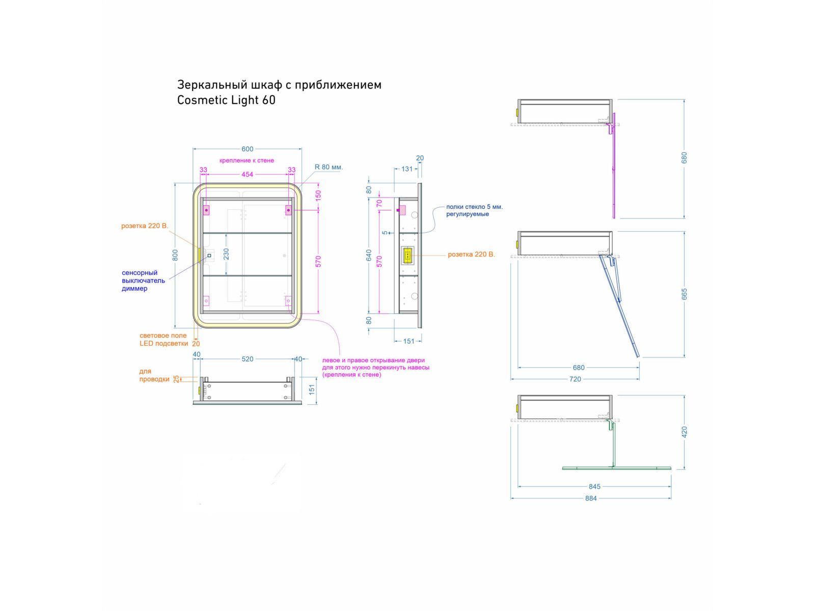 Зеркальный шкаф Cosmetic Light 60