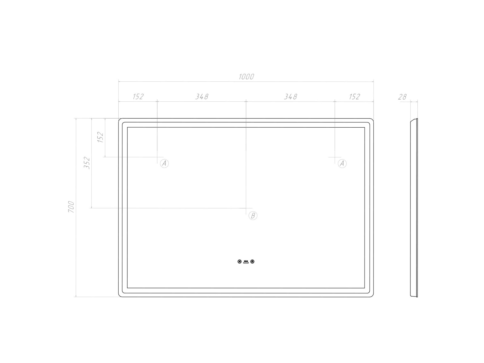 Подсветка фронтальная по периметру, с цветовой температурой 5000К – нейтральный белый, управление подсветкой сенсорное/датчик присутствия (1.5 м.)