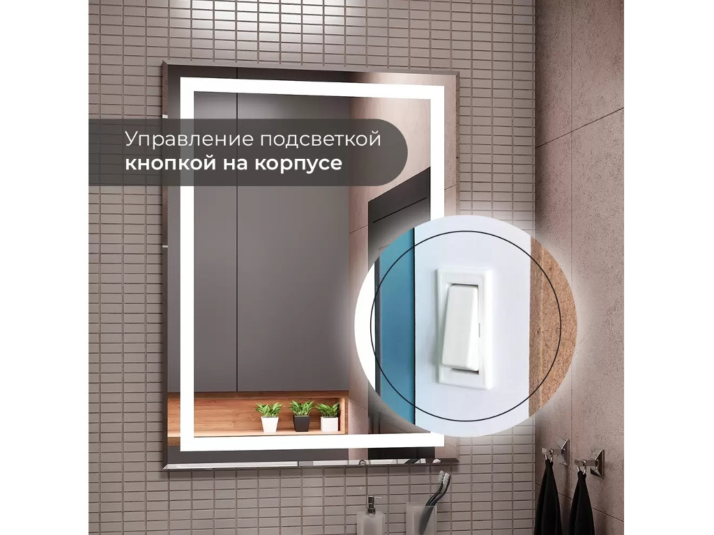 Подсветка фронтальная по периметру, с цветовой температурой 6000К – холодный белый, управление подсветкой механический