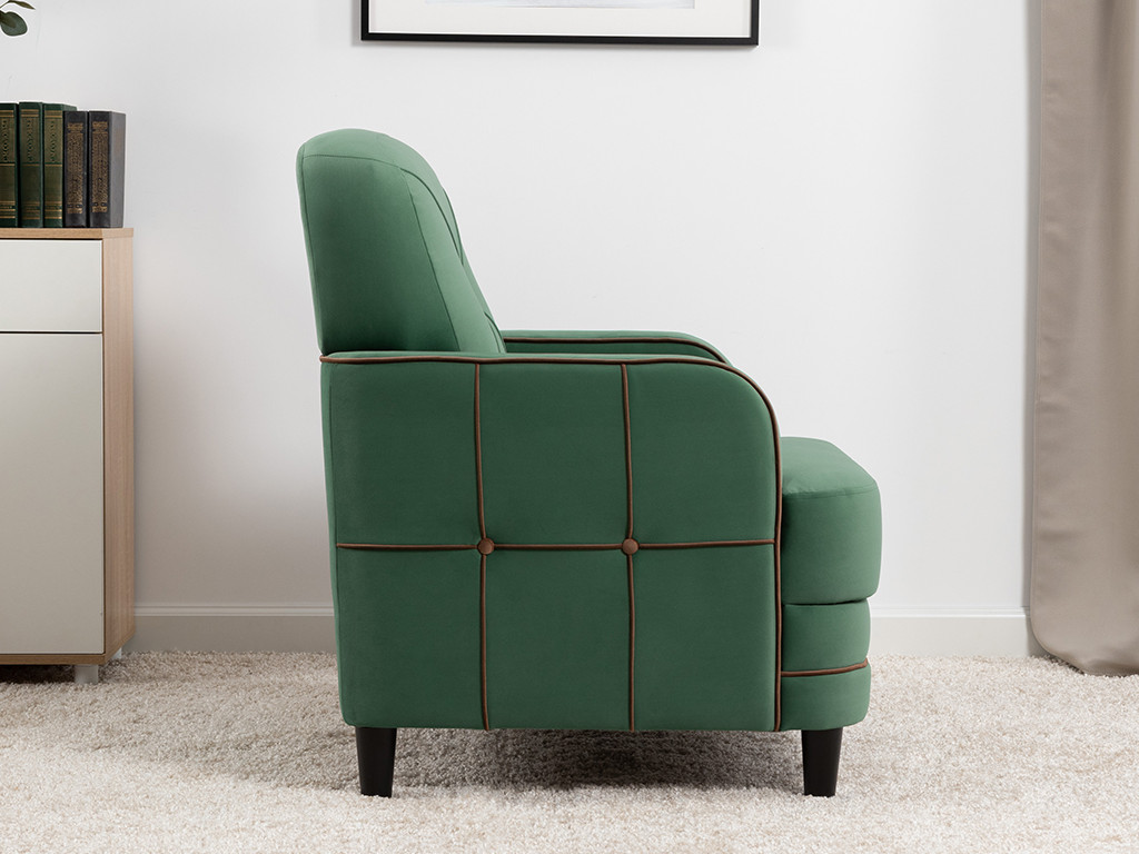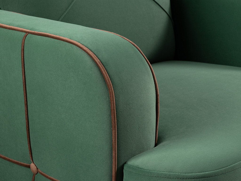- Пуговицы в местах пересечения кантов на подушке и вставке подлокотников.