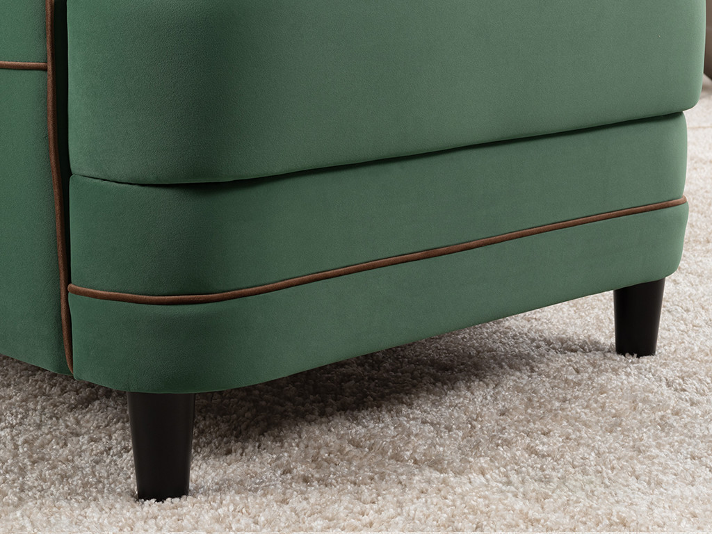 - По торцам подлокотников и думках контрастный декоративный кант.