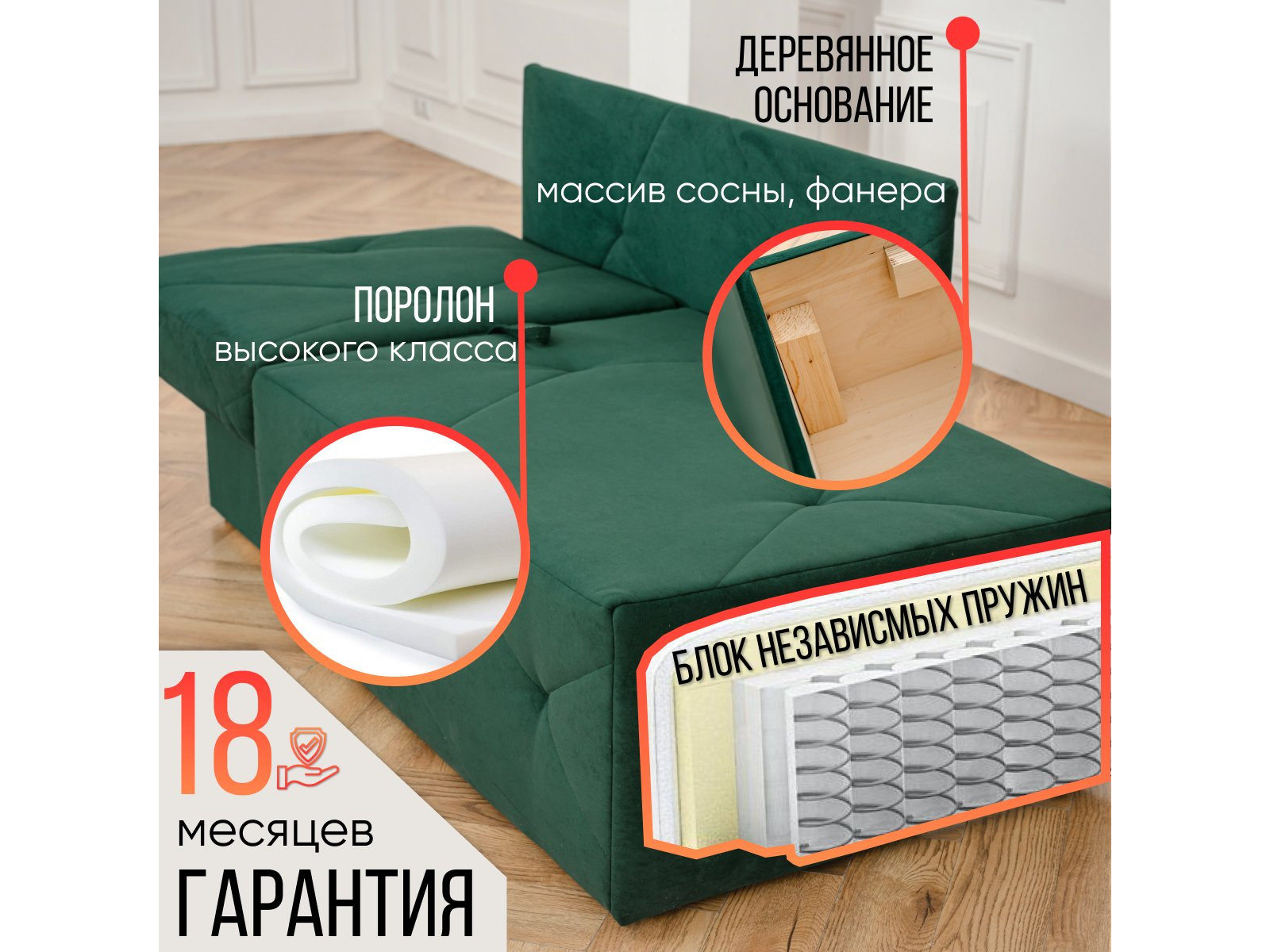 Наполнение: ППУ, независимый пружинный блок