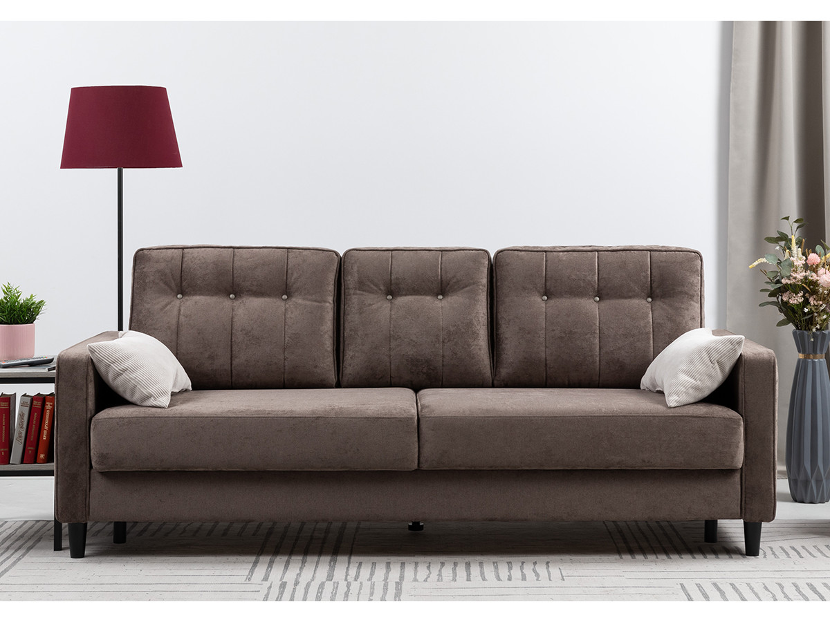 Подушки имеют трапециевидную форму, с утолщением к низу для комфорта посадки. Кант по всему периметру подушек, декоративные утяжки металлическими пуговицами, вертикальная стежка.