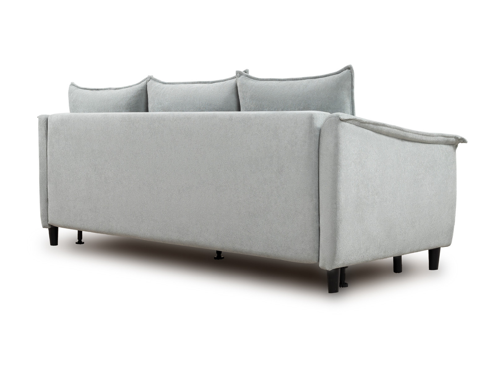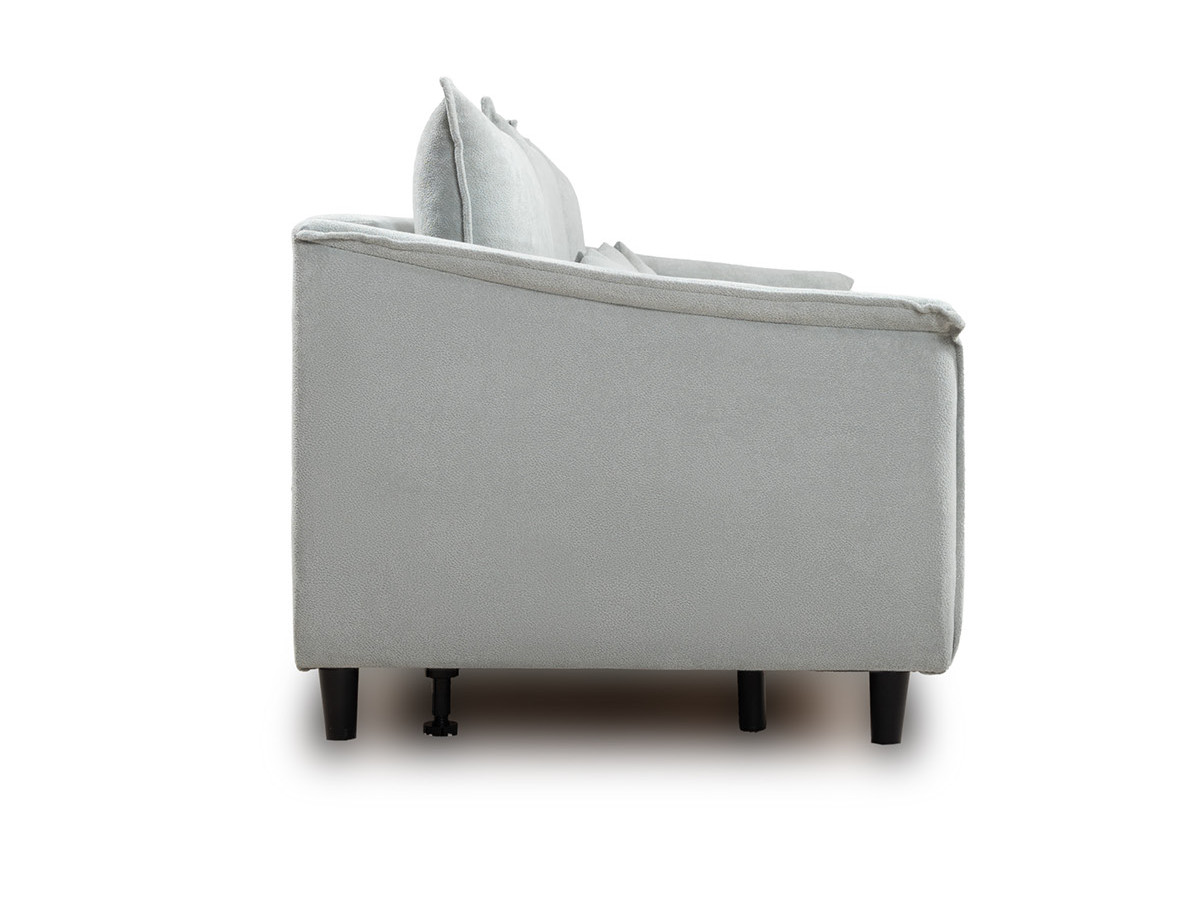 Спинка с тремя приспинными подушками. Две подушки трапецивидной формы, центральная квадратной формы на молнии, по трем сторонам которых проложена отделочная строчка на 1,2 см. По контуру боковин проложен декоративный кант на 1,2 см из основной ткани. Кант проходит по центру передней части боковины, а по внутренней верхней части сборка.