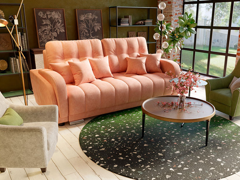 Диван средней жесткости, рекомендуемая нагрузка на одно спальное место до 90 кг.
