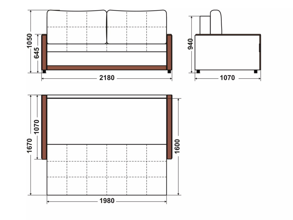 Наполнитель: в основании спального места независимый пружинный блок с дополнительным многослойным покрытием: термовойлок, высокоэластичный пенополиуретан, синтепон; подушки спинки имеют внутренний чехол, наполнитель комбинированный, гипоаллергенный пух «комфорель» с пенополиуретановой крошкой. Накладки – МДФ цвета венге.