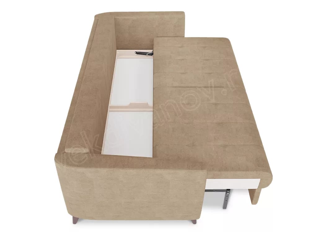 Каркас: выполнен из древесины хвойных пород, фанеры лиственных пород, лам. ДСП и лам. ДВП. В диване короб из ЛДСП, опоры пластик под конус высота 120 мм