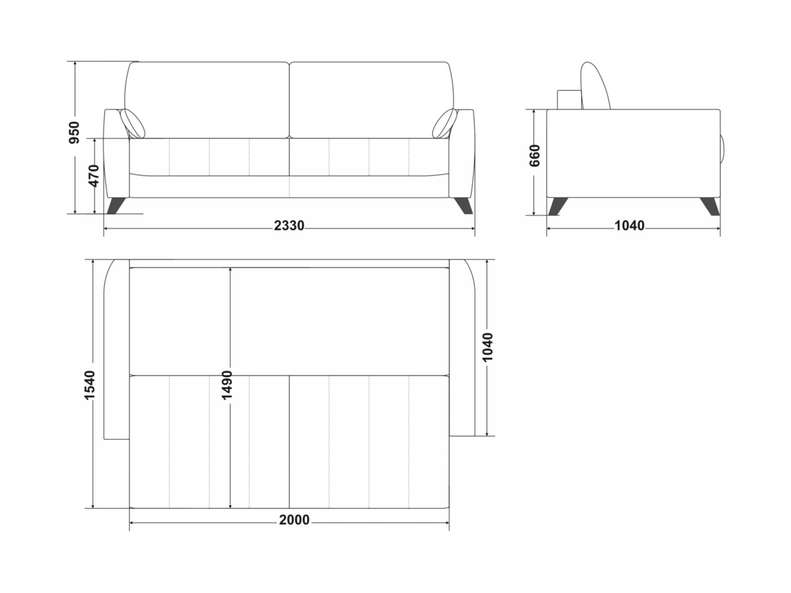 Размеры дивана (мм): 2330*1040*950