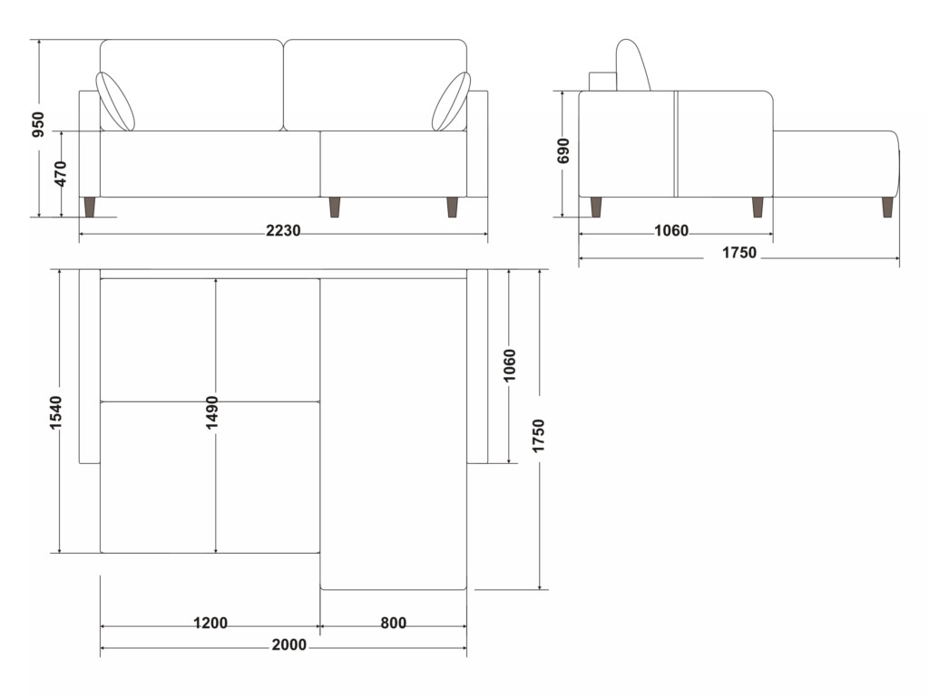 Размеры дивана (мм):  2400*1750*950