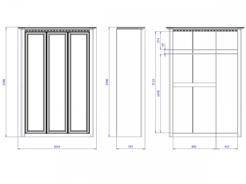 Размер ШхГхВ: 1644*593*2300 мм