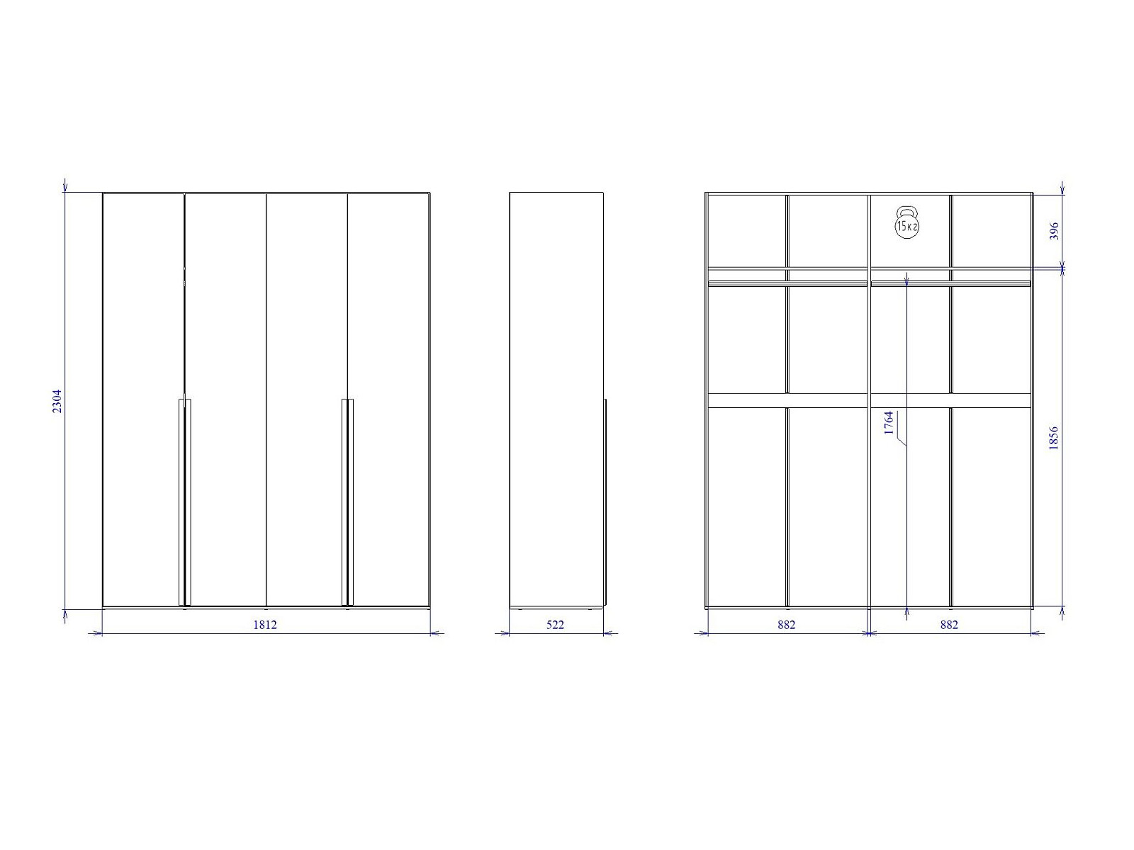 Макс.нагрузка на полку (кг): 15