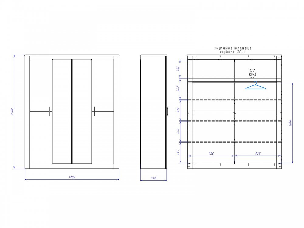 - Шкаф 4-х дверный 2300 Денвер Риббек серый