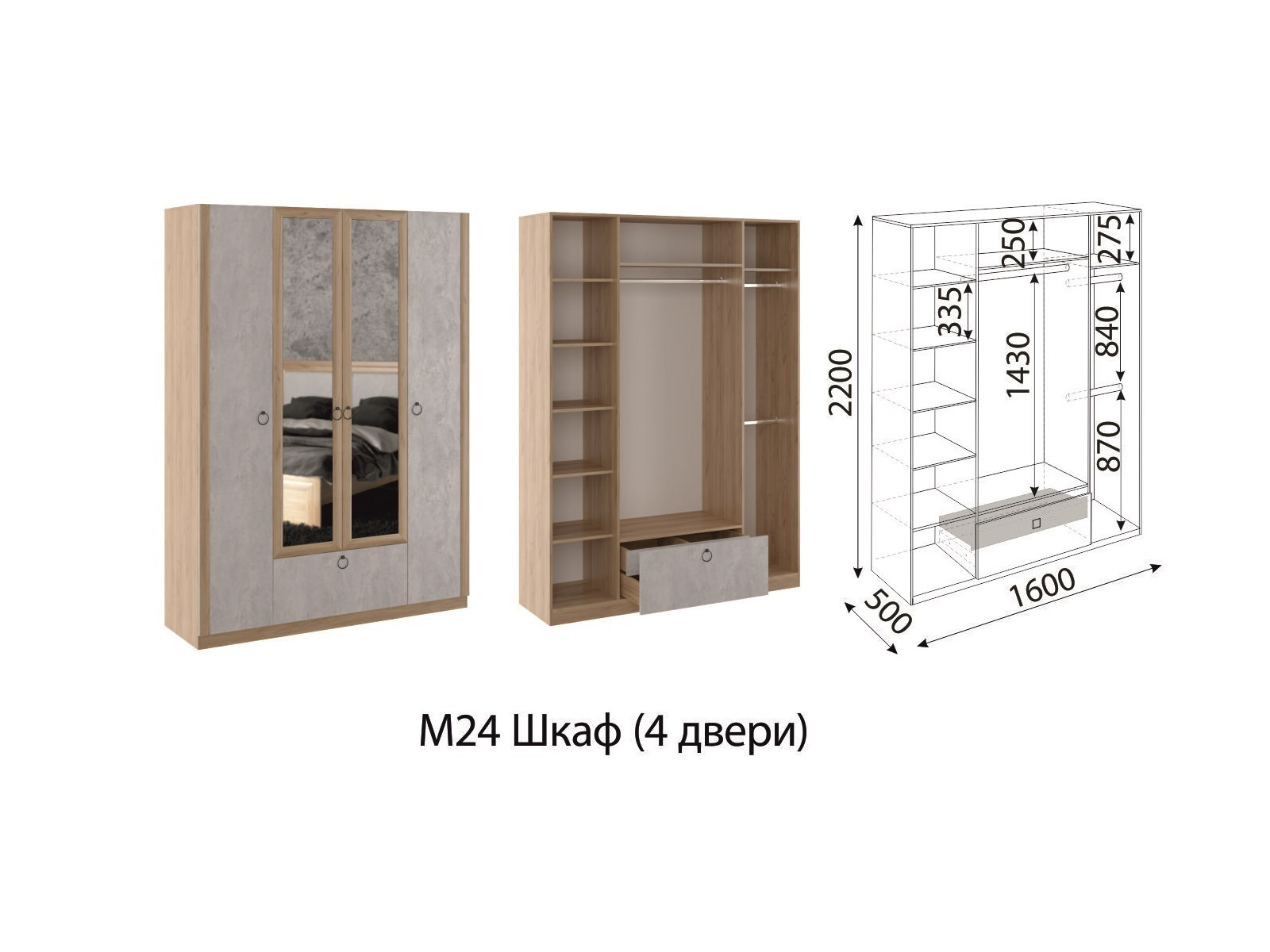 - Шкаф четырехстворчатый Глэдис М24 Дуб золото
