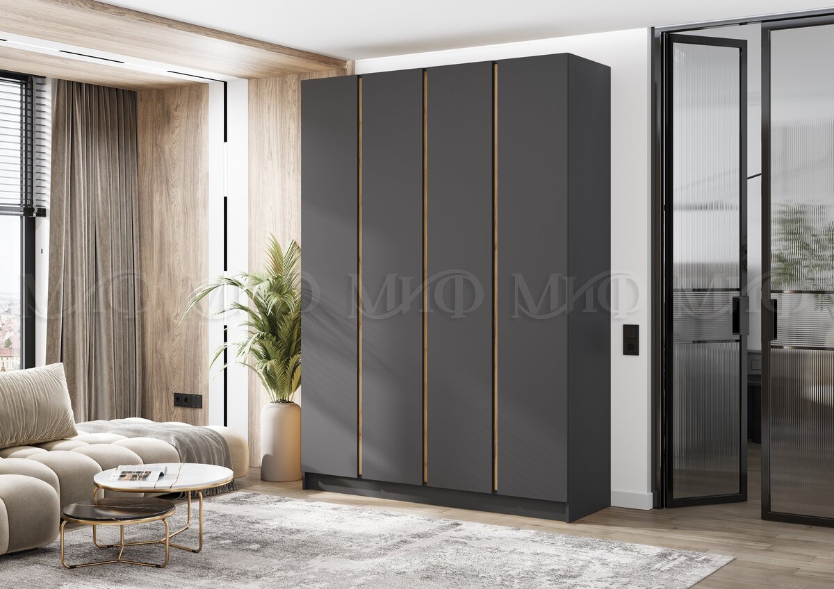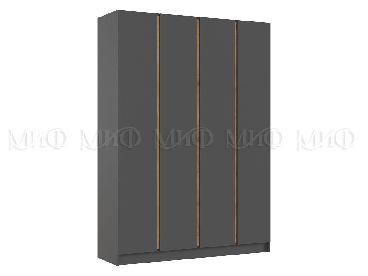 - Шкаф четырехстворчатый Келвин (1600) Графит-вставка дуб крафт