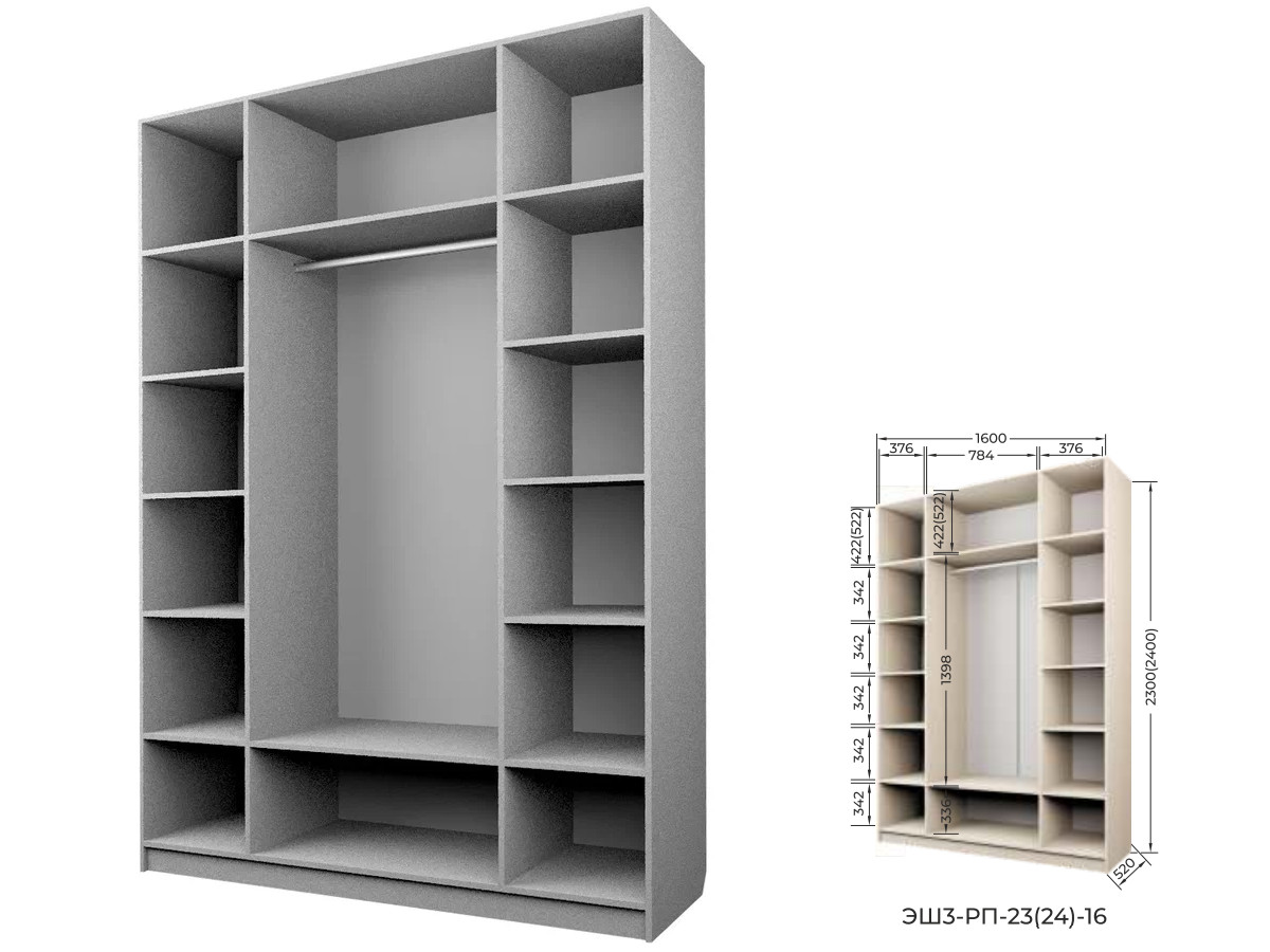 Комплект: ЭШ3-РП-24-16, Шкаф для Одежды + два ЗС-24,Зеркало для шкафов ЭШ 2400 мм