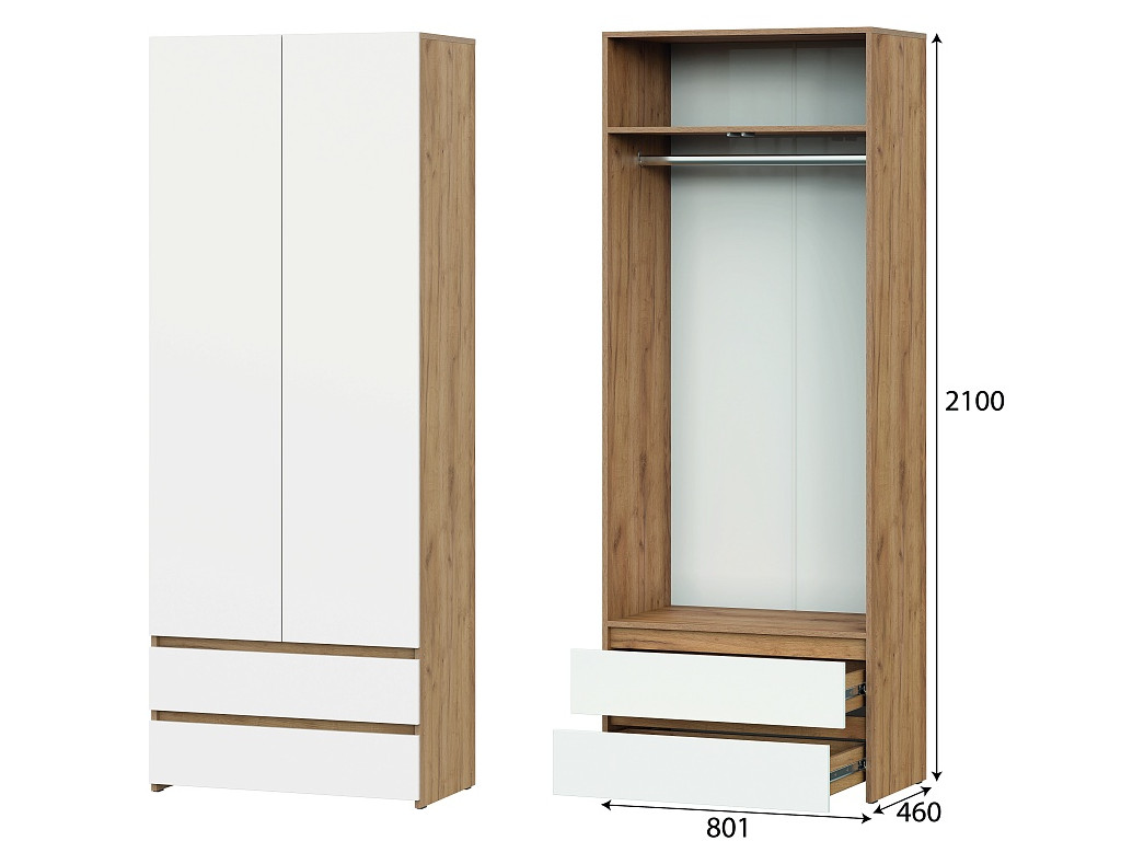 Шкаф двухстворчатый с ящиками Некст 1 Дуб Золотой/Белый