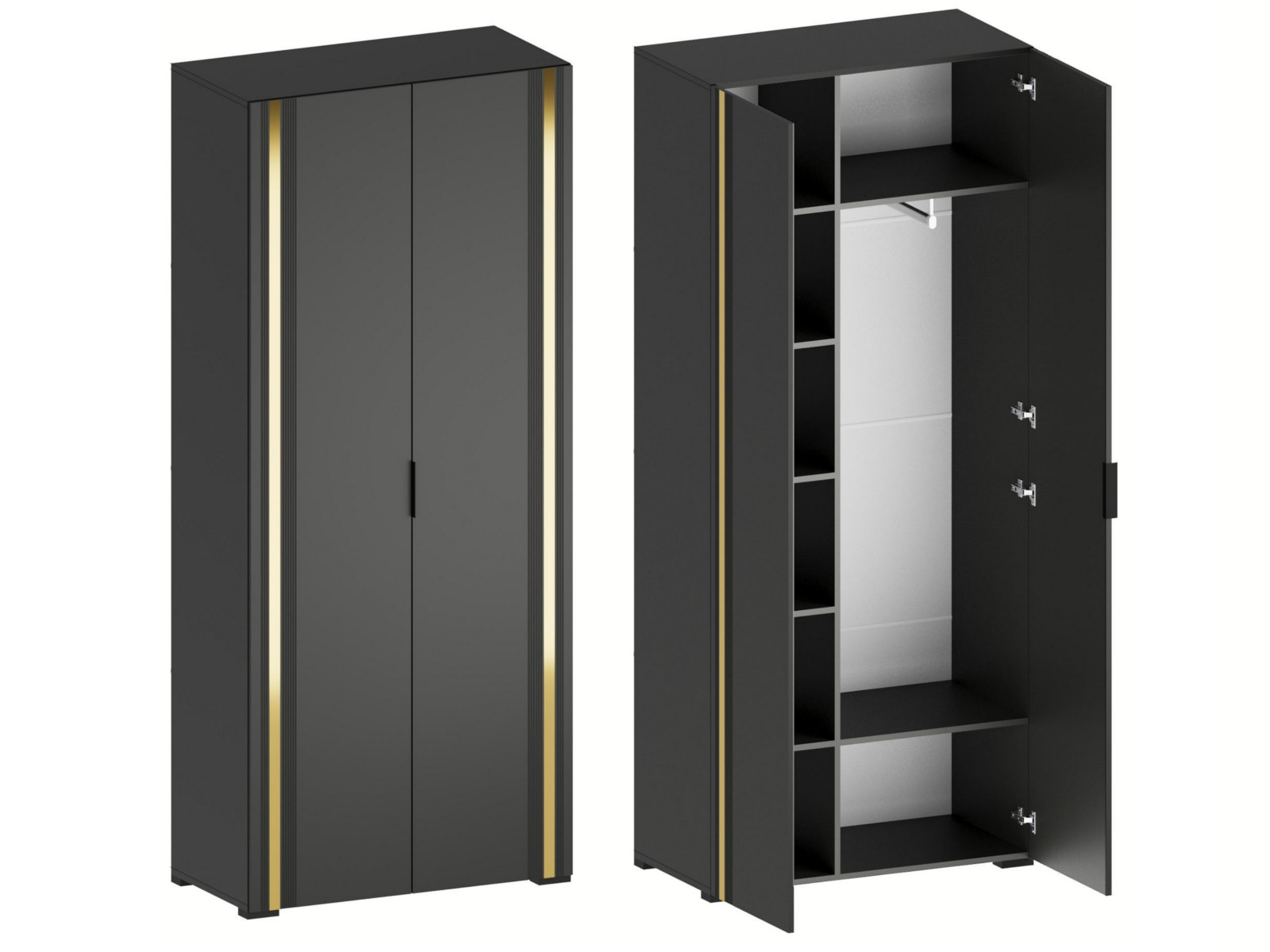 - Фасады из МДФ с оригинальной фрезеровкой покрыты суперматовой пленкой с эффектом Soft Touch в цветах Графит и Milk.