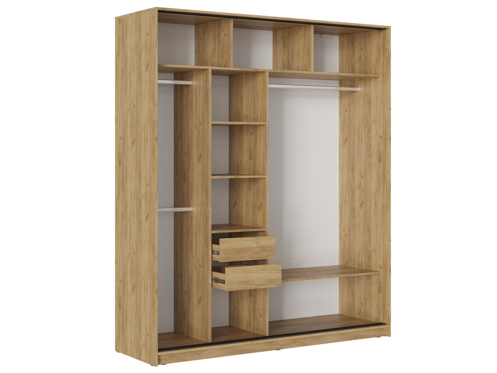 - В центральной части, габаритом Д.456 х В.1890 х Г.522 мм, расположены 3 несъёмные полки и 2 ящика.